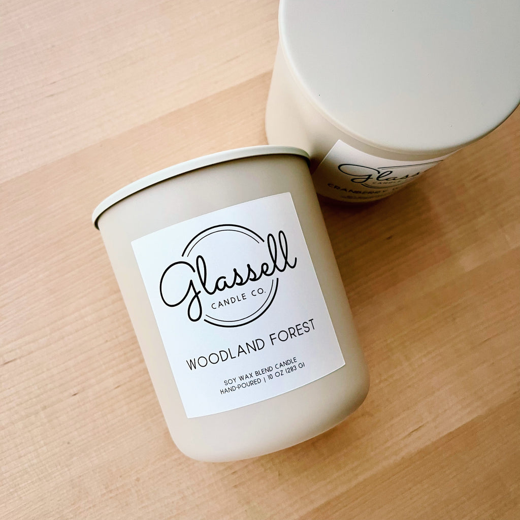 We use matte cream jars with metal lids for our 10oz winter candles, with every candle having our signature label. Candles melt evenly with a burn time of approximately 40-55 hours for 10oz jars.